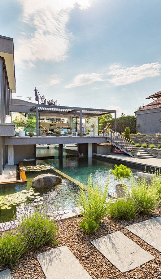 This 167-square-meter swimming pond in Germany forms the centerpiece of a property designed as a cohesive whole …